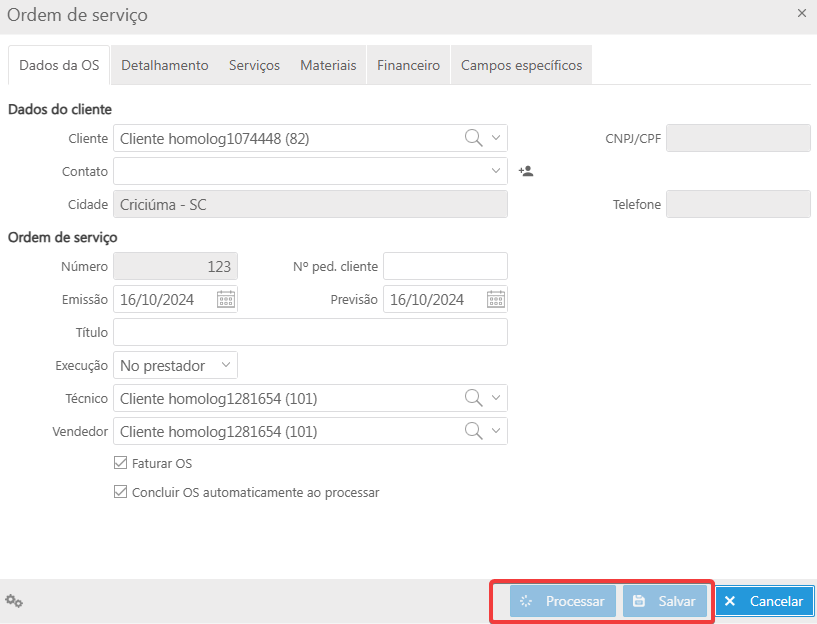 Implementado bloqueio de interação dos botões “Processar” e “Salvar” até a conclusão do retorno da chamada.