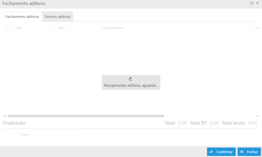 Orçamentos: Fechamentos de aditivos