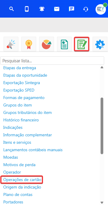 Acesso em: Início > Listas > Operações de cartão