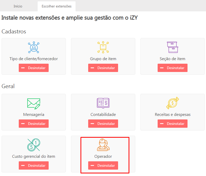 Acesso em: Configurações > Extensões > Seção Geral > Operador
