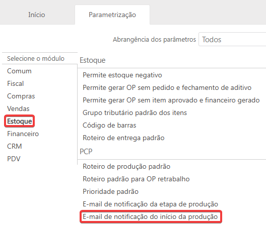 Implementado envio automático de e-mail ao processar ordens de produção. Incluído novo parâmetro para configurar o envio.