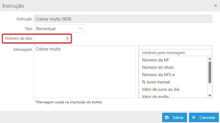 Incluído campo "Número de dias" na instrução "Cobrar multa" do arquivo CNAB 240 para o banco BANRISUL.
