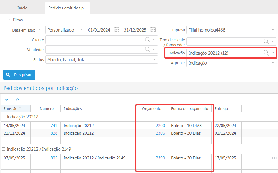 - Ajustado o filtro de "Indicação" para exibir pedidos de venda que possuam mais de uma indicação;